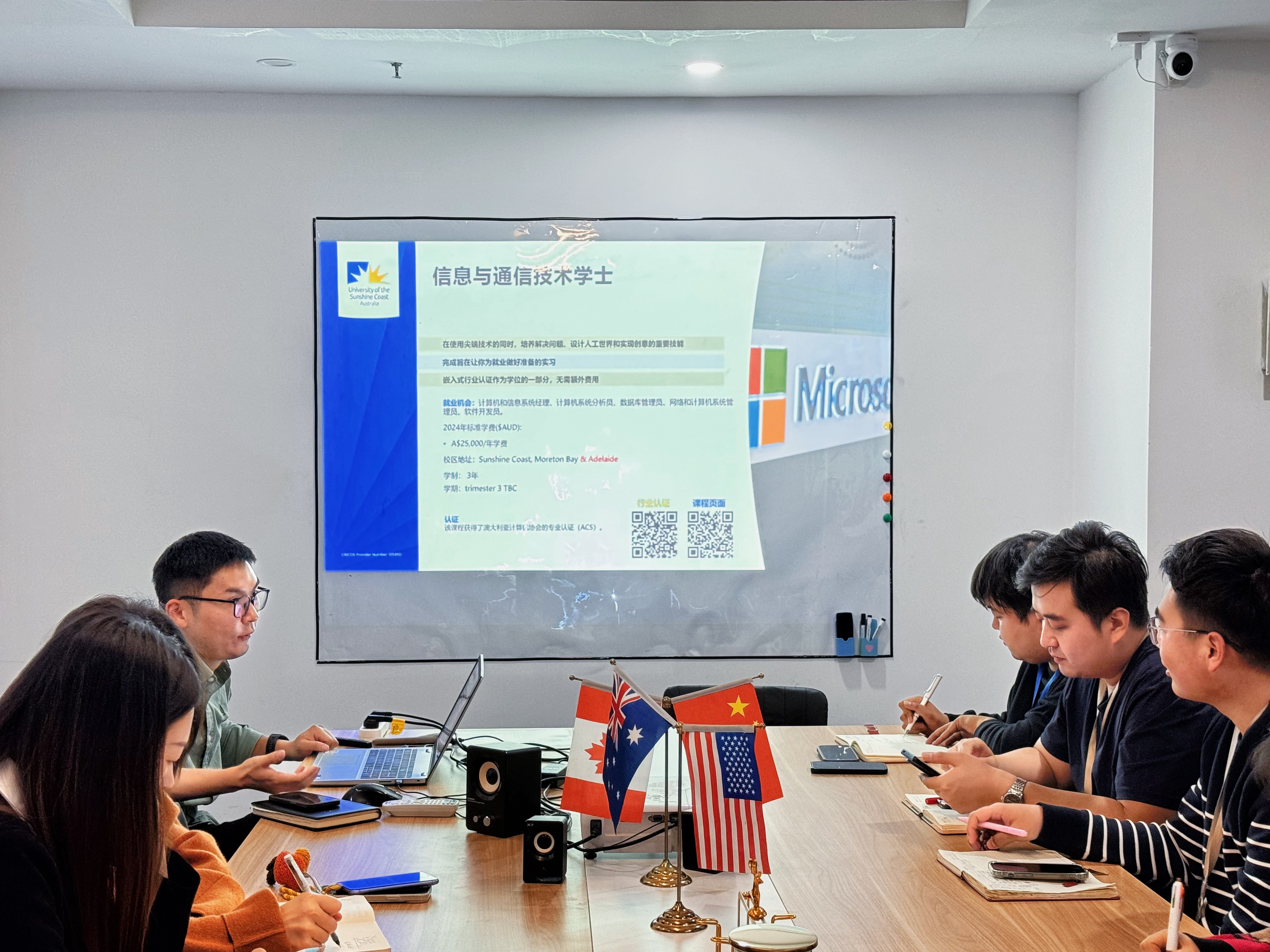 10月21日,澳大利亚教育中心(ECA)中国市场经理Kevin王先生再次亲临驰美留学教育集团进行交流访问,并开展了一场关于澳大利亚公立大学的申请培训。此次培训主要聚焦于阳光海岸大学,从入学条件到就业前景,一应俱全。